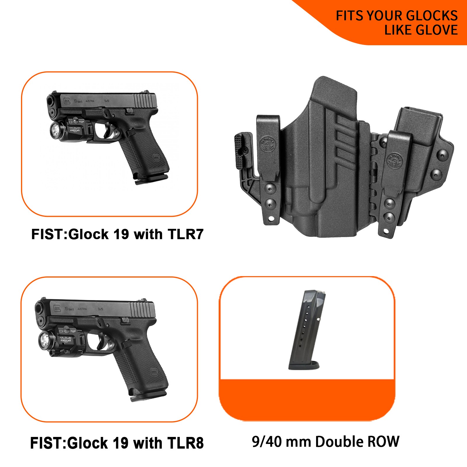 Fits: G17/22/31/19/19X /23/32/44/45 +Mag With TLR7/TLR8 Flashlight
